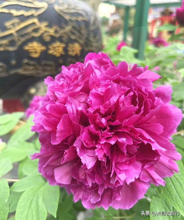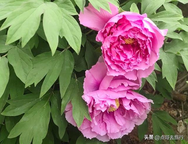 园中的“牡丹花王”,据尊府牌深化,这两株牡丹树龄在120到150年之间,枝干粗壮,花朵比东说念主脸还大,层层花瓣舒展,号称镇园之宝。