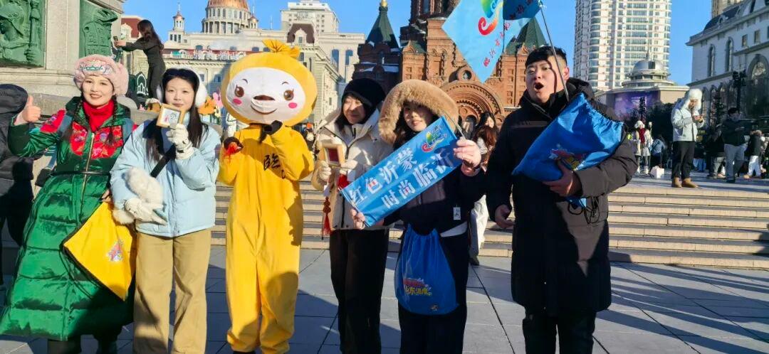1月5日,“山东文旅天团尔滨走亲戚”快闪巡游在哈尔滨中华巴洛克历史文化街区烦躁演出,临沂的“明星”东说念主偶一出场就获利满场喜悦。